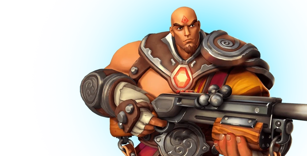 Buck ist ein Flankenmeister mit Schwerpunkt auf Nahkampf- und Hit-and-Run-Strategien. Seine Schrotflinte schießt Granatsplitter, die im Nahbereich hohen Schaden verursachen. Netzschuss erlaubt Buck, seine Ziele zu verlangsamen, wodurch sie leicht zur Beute werden. Die Erholung stellt nach einer kurzen Abklingzeit einen großen Gesundheitszustand wieder her. Die Bewegungsfertigkeit von Buck, Heldensatz ermöglicht es ihm, innerhalb kürzester Zeit unglaubliche Entfernungen zu überwinden.