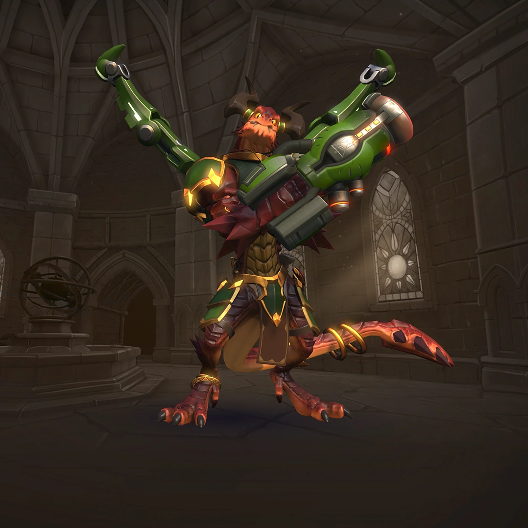 Born as a Wyrin, a wingless underling to a dragon, Drogoz escaped his servitude after hoarding enough wealth to afford a pair of Crystal-fueled mechanical wings crafted by Barik. The greed required to save for them made his draconic blood flow with cruelty, compelling him to continue on a Realm-wide rampage of destruction as he amassed his own hoard, one that will rival that of the true dragons.