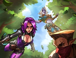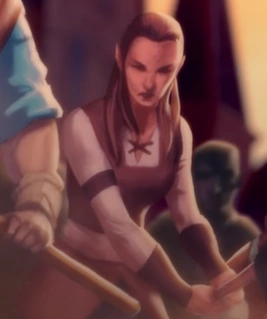 Elves are a race in the Realm that are near identical in appearance to humans, save for pointed ears. Despite the lack of notable physical differences, elves differ from humans in other ways, though most of these differences were never revealed, making the only known difference being their immensely increased lifespans compared to other races.[1][2] They don't appear to possess any notable unique behaviors, largely seeming to be regular members of society, as several can be seen throughout the various lore cinematic and cards.