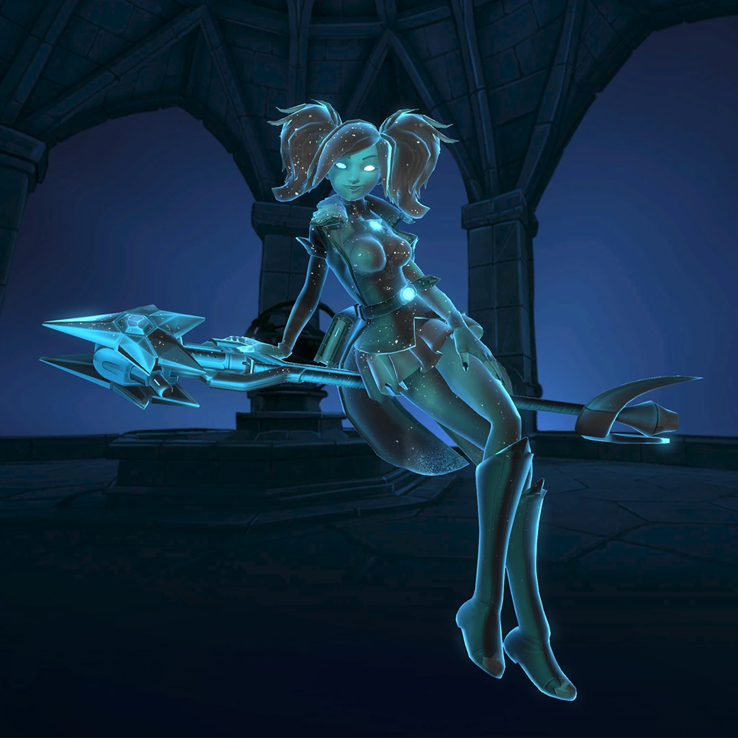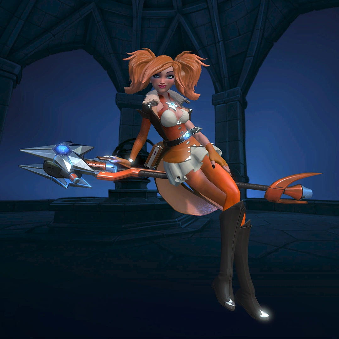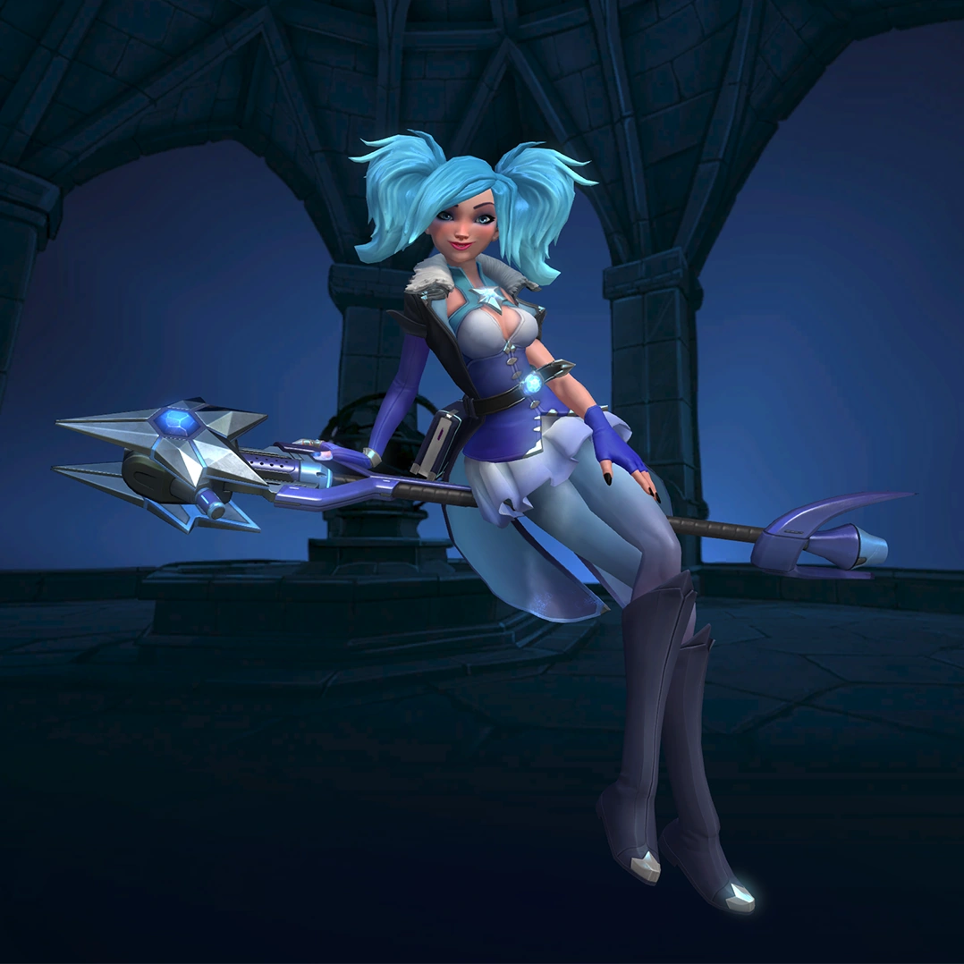 Evie is a flank champion with very high mobility. Her weapon, the Ice Staff, lets her fire high damage explosive shots every second. Her two movement skills, Blink and Soar, allow Evie to appear and disappear behind enemy lines and wreak havoc, while Ice Block gives her up to three seconds of invulnerability. Her ultimate skill (Ice Storm) will damage, slow, and cripple enemies in a large area. This provides her with a strong teamfight and zoning tool. However, Evie has a low Health pool and heavily relies on her maneuverability to stay alive. Managing her cooldown well can turn her into a fearsome flank.
