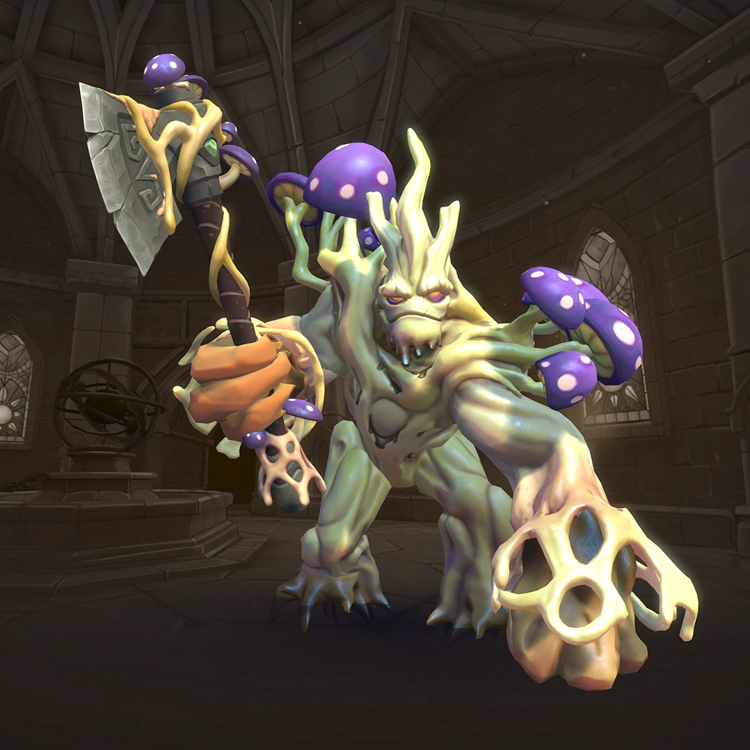 Grover is a ranged support character that focuses on range Poke Damage and Group Healing. Grover's Throwing Axe does higher damage when the enemy is farther away and does lower damage when enemies are closer to him. His healing ability Blossom Is a passive heal only healing allies who are near him, activate this skill for a immediate burst heal on allies in your passive ability's Healing affect. Grover can also Throw his axe to cripple a foe and prevent them from using movement abilities. Grover can also Extend a vine from his arm to grab a ally or surface to pull himself to them like a grappling hook. Grover has one of the most conflicting ability sets with his kit having no synergy together and players often having to choose between, Long range high damage Grover, or Group Healing Grover.