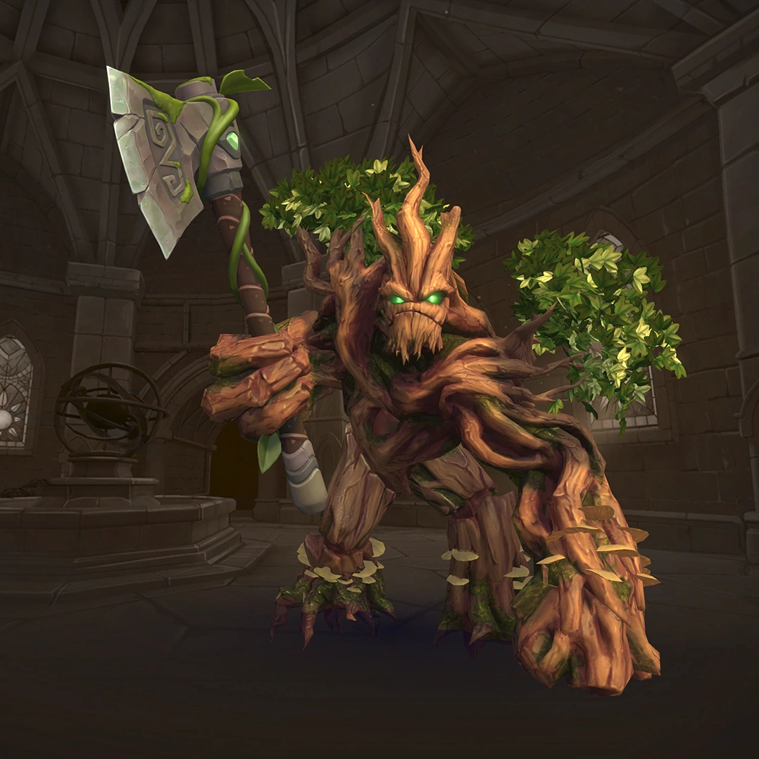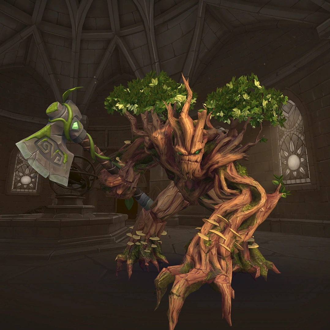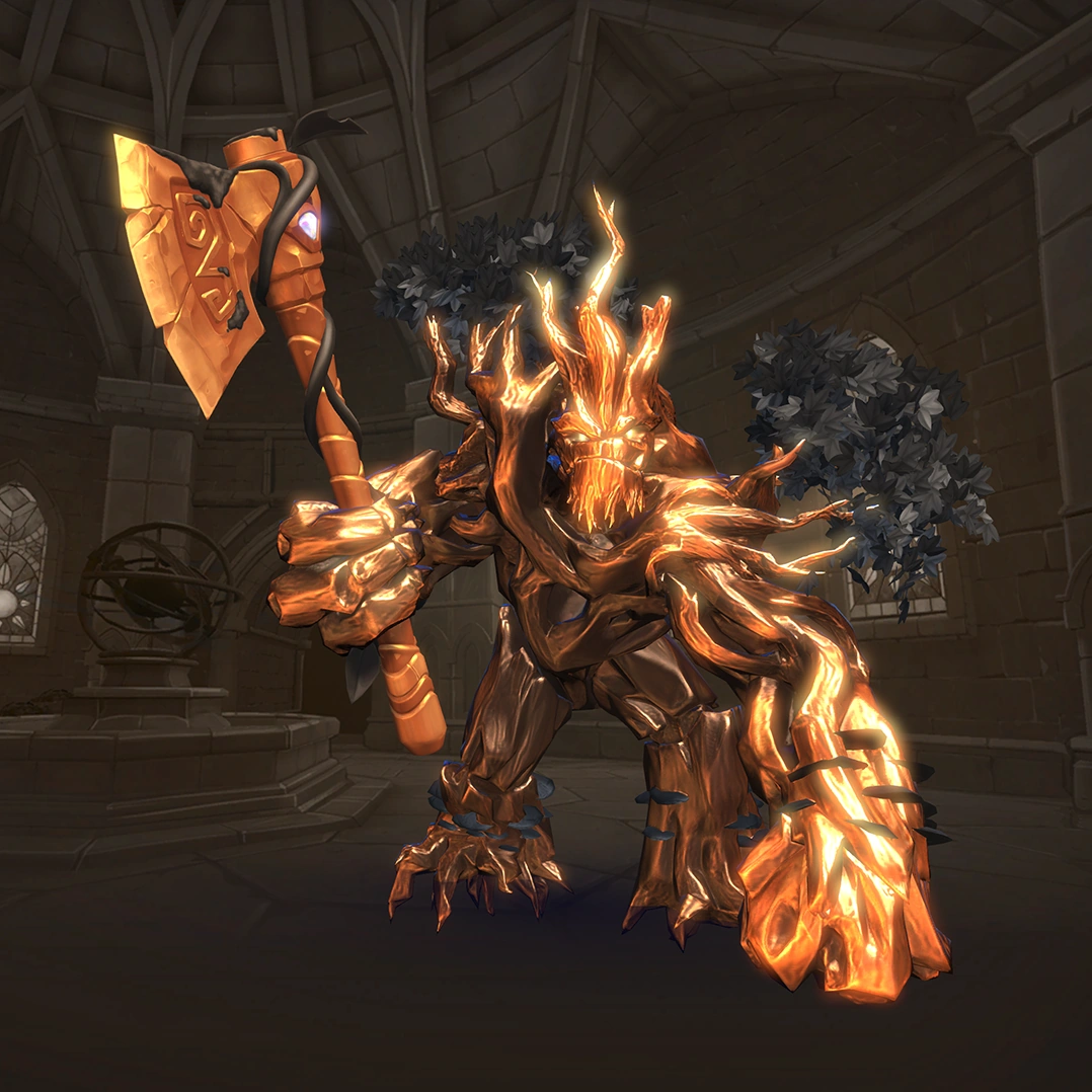 Hoisting his trusty axe, he stomps into battle once again, intent on destroying anything and anyone who would harm the natural world.