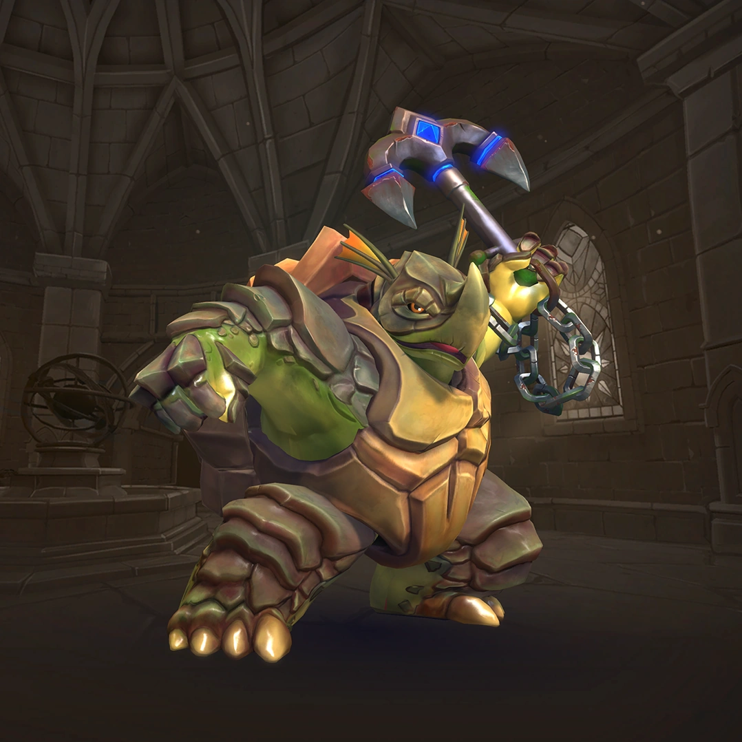 - Upon reaching 40% health the Cooldown of Shell Spin is reduced by 25/50/75/100%.