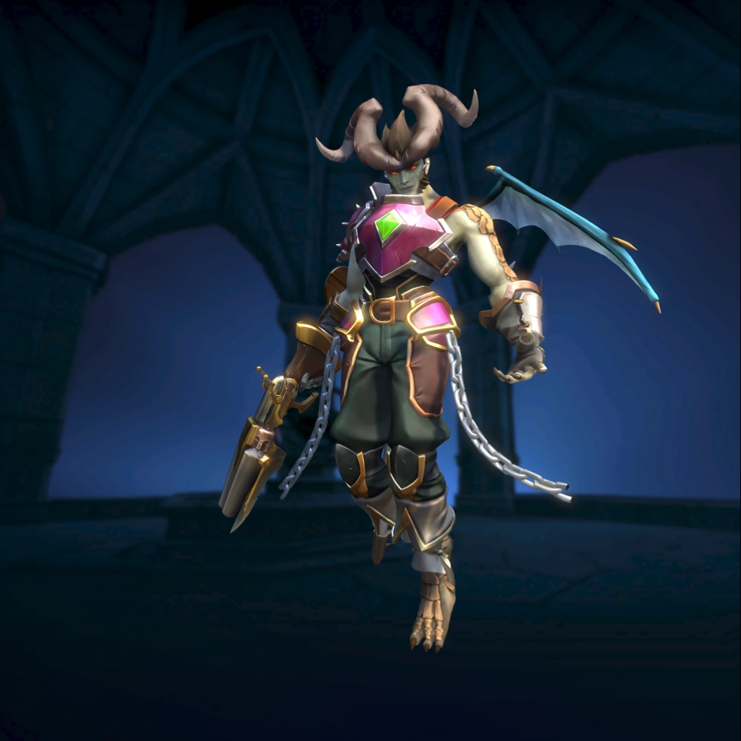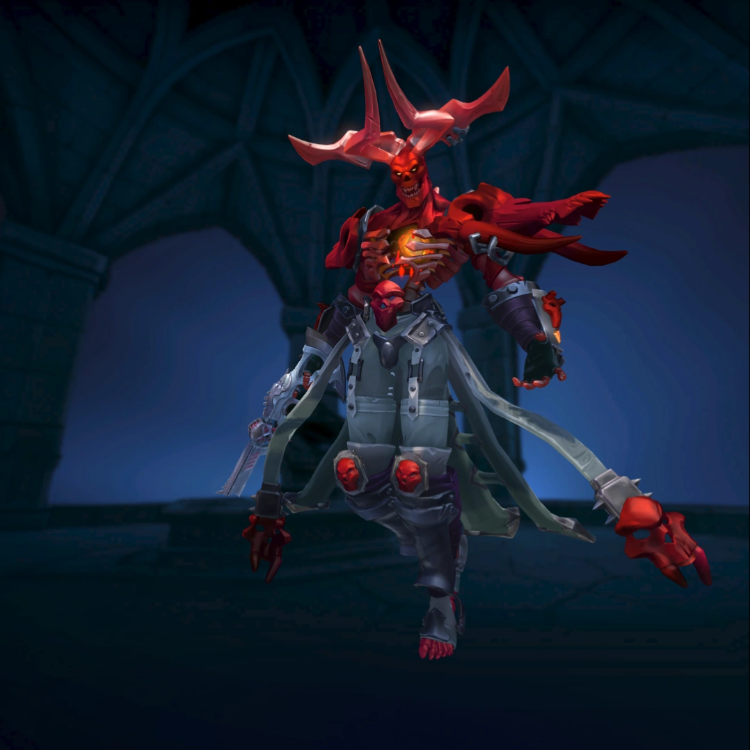 Omen was in search of greater power — the help his family deserved — when he climbed a flaming mountain looking for wisdom like that of Jenos. Instead of finding answers like that of Ascension Peak, he was met with a void of silence from the night sky. Lost in rage, he threw himself into the lava boiling below him. Before he perished, Nyx answered the prayers cosmic gods ignored. She granted him the power to do what he felt the gods should.