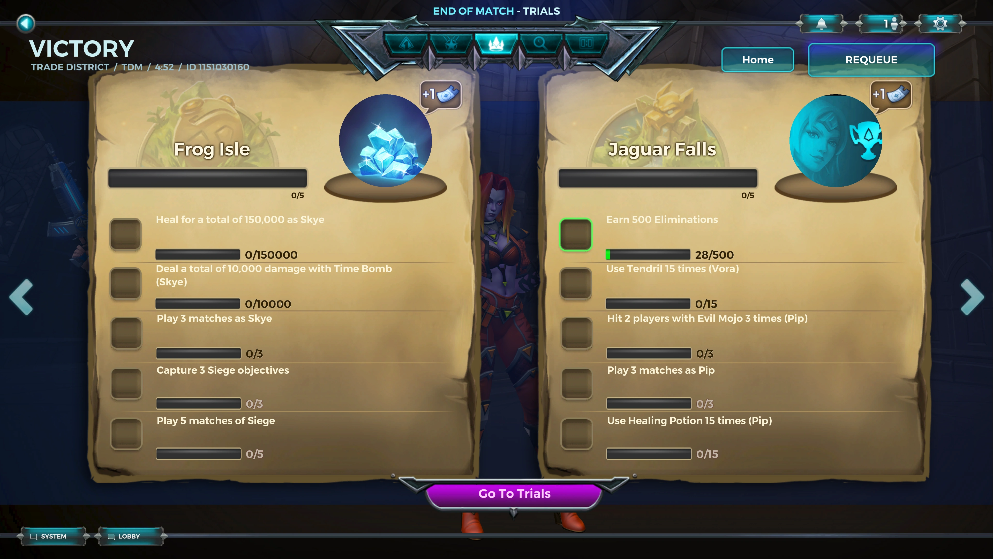 Gold, Event Pass Levels, Avatars, Sprays, MVP poses, emotes, and more. The progress of the two currently active Trial locations can be viewed here.