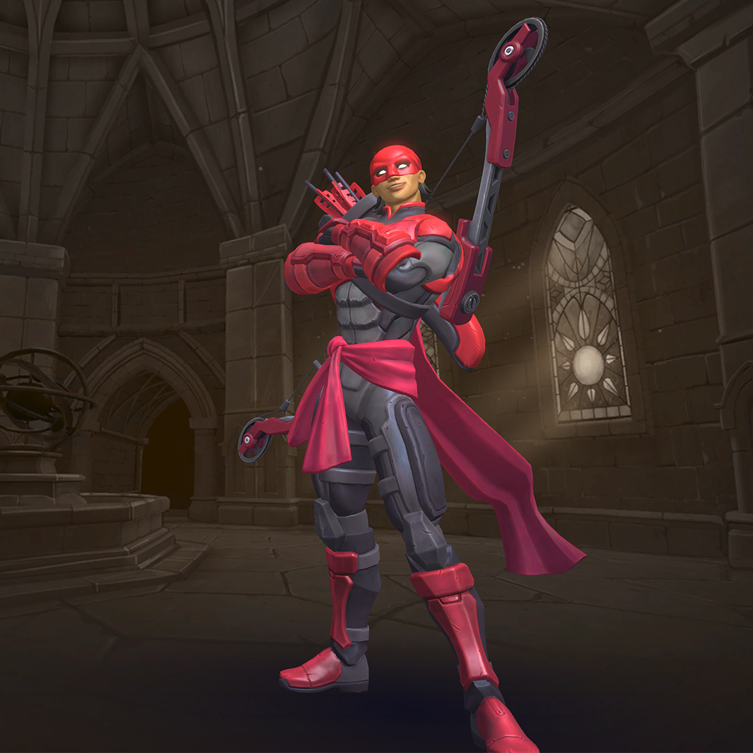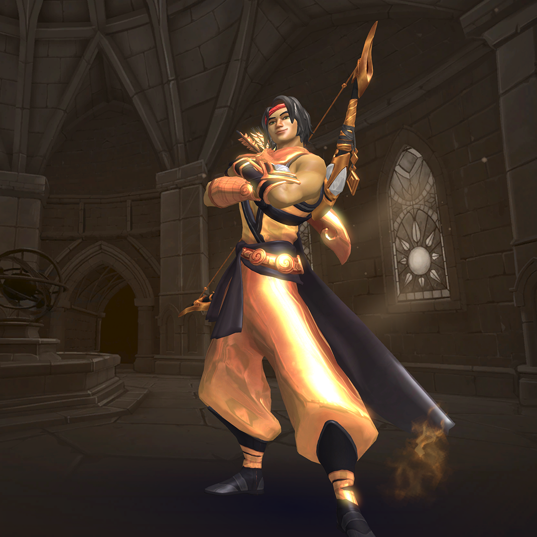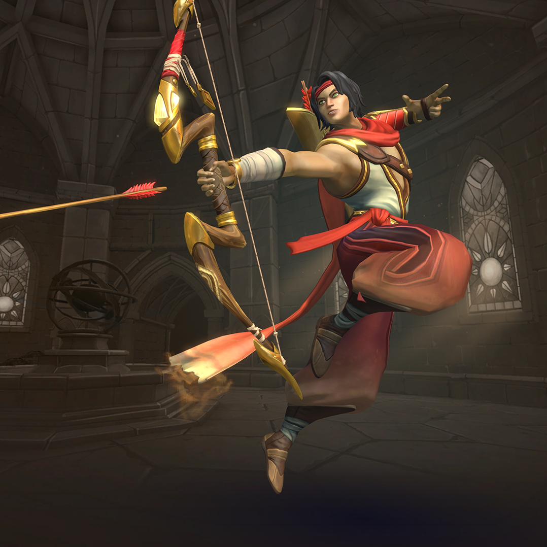 Sha Lin is a damage champion and an oppressive ranged attacker, who fires high damage arrows, dealing more damage the longer they are charged. The Crippling Arrow allows him to cripple enemies. Rapid Shot allows Sha Lin to fire many arrows in a short burst. Withdraw (which lets him backflip away) and his Ultimate skill, Heat Haze, both grant Sha Lin stealth, making him invisible, making him harder to track down and allowing him to slip away when under fire. However, he is very reliant on his skills and will be easily taken out while on cooldown. Player awareness and anti-stealth effects are also a harsh counter against him.