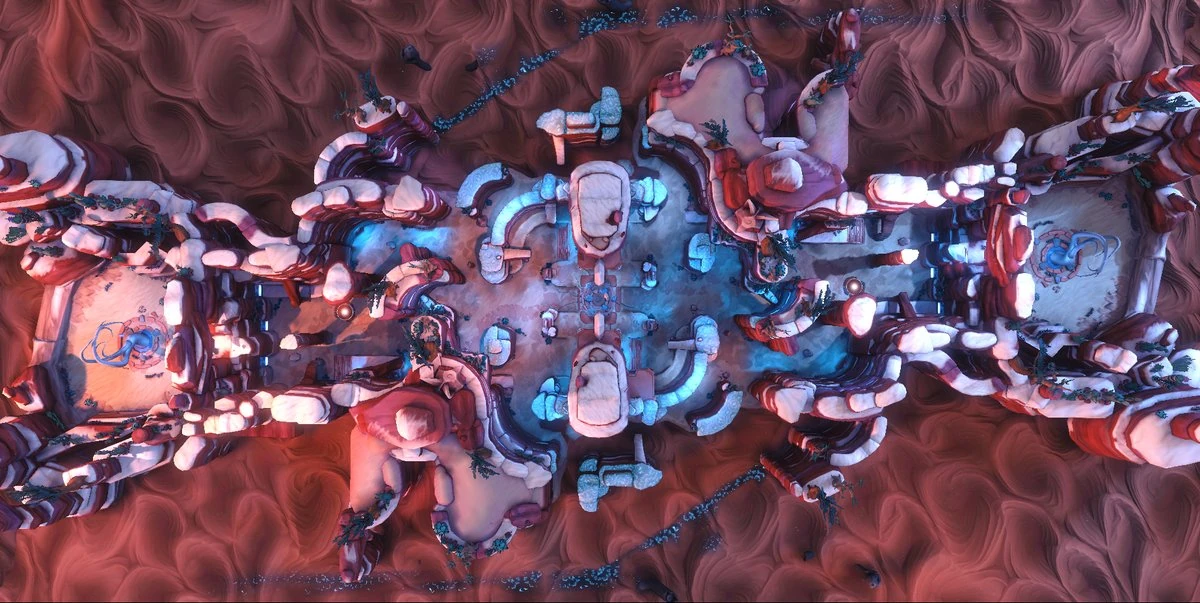 This map is one of the few maps with a rotated layout, unlike most maps, having a mirrored layout. The map has a unique design, with the two sides having different appearances that distinguishes them. Like all other siege maps, There is a Capture Point in the middle. The bases are located at opposite ends of the map.