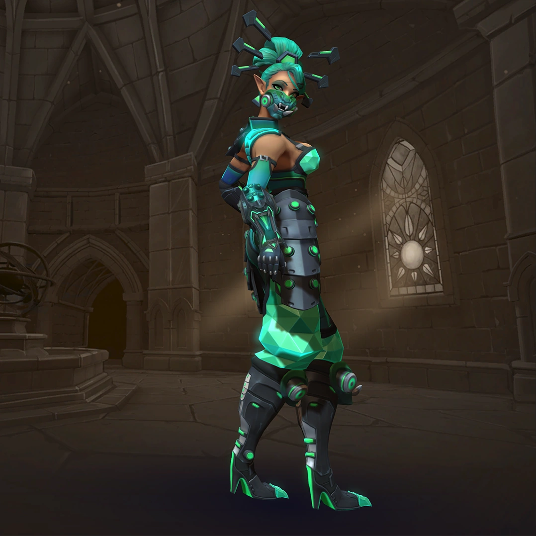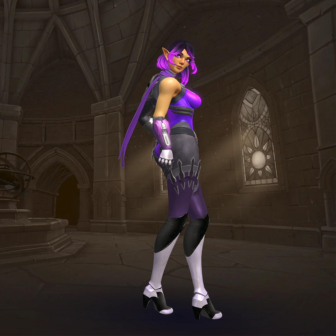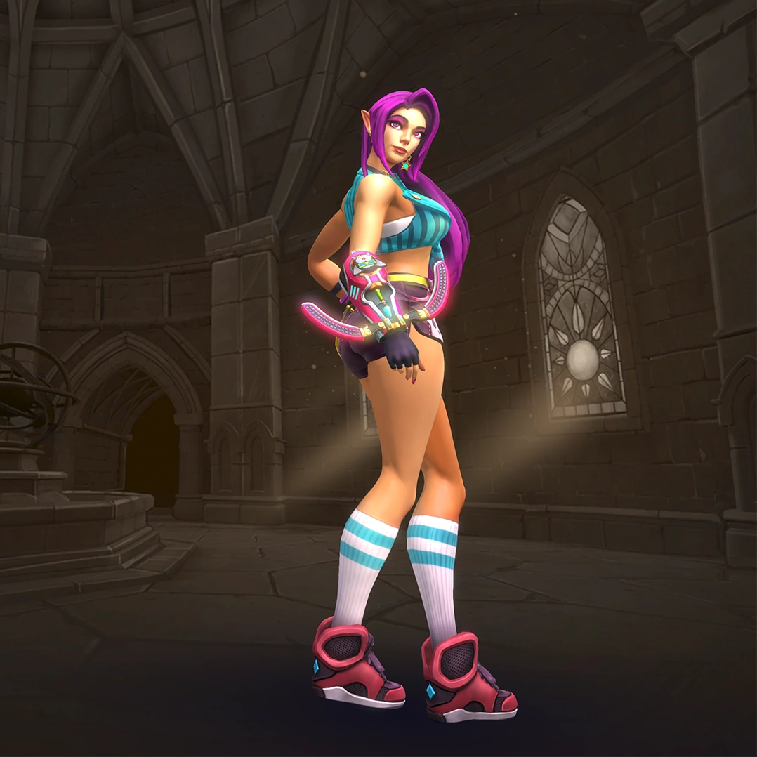 Skye is a Flank Champion with lethal damage output at close quarters, with prevalence for utilizing stealth to get the drop on enemies, However, despite Skye's high base speed she lacks any advanced mobility options and is limited to the high cooldown abilities to get into enemy backlines, that mixed with her poor range puts her at a noticeable disadvantage.