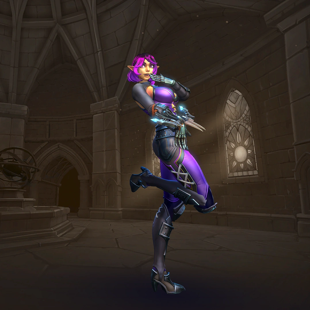 Most assassins prefer to remain anonymous, but Skye thrives on the fame, and lives in the center of attention. Trained by fabled monks of Silver Moon, and outcast for violating each of her sacred vows in meticulous order, Skye enters the fight to much speculation. Whoever her next target, wives should be mindful of their husbands, for it's said a single glance from Skye can destroy a man's heart.