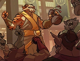 Ancient Symbol - A unique symbol appears in several of Tiberius' cards, as well as on Tiberius himself. It's seemingly used as a symbol by the Tigron group Tiberius originates from, though at the same time, it doesn't seem to originate from them, as a torn banner can be seen with this symbol in the ancient temple Tiberius' sword was found in, with it being highly unlikely Tiberius' group put it there due to the sword having slumbered for millennia while Tiberius had spent quite awhile searching for it.